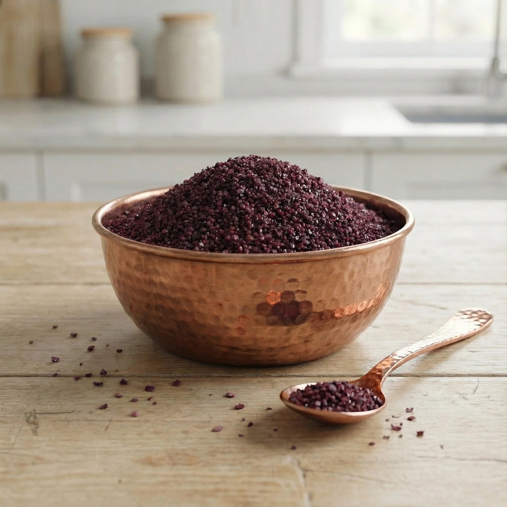 Gaziantep yöresinden toplanan sumak tanelerinin geleneksel yöntemle öğütülmesiyle elde edilen toz sumak, katkı maddesi içermez.