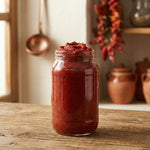Gaziantep’in taptaze tatlı biberlerinden üretilen bu salça, tamamen ev yapımı usullerle ve gün kurusu yöntemiyle hazırlanır. Katkı maddesi içermez, kıvamı yoğun ve rengi doğal kırmızıdır. Her kaşıkta Gaziantep’in güneşi ve emeği saklıdır.